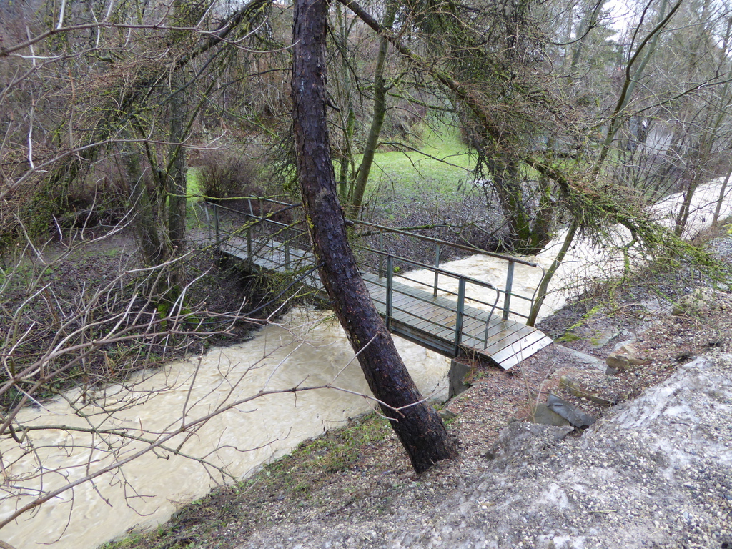 Fast das ganze Jahr 2017 fristete der Kommenbach, der bei Grimmelshofen (Kreis Waldshut) in die Wutach mündet, ein müde plätscherndes Stillleben. Die Bilder wurden aufgenommen um 13.45 Uhr