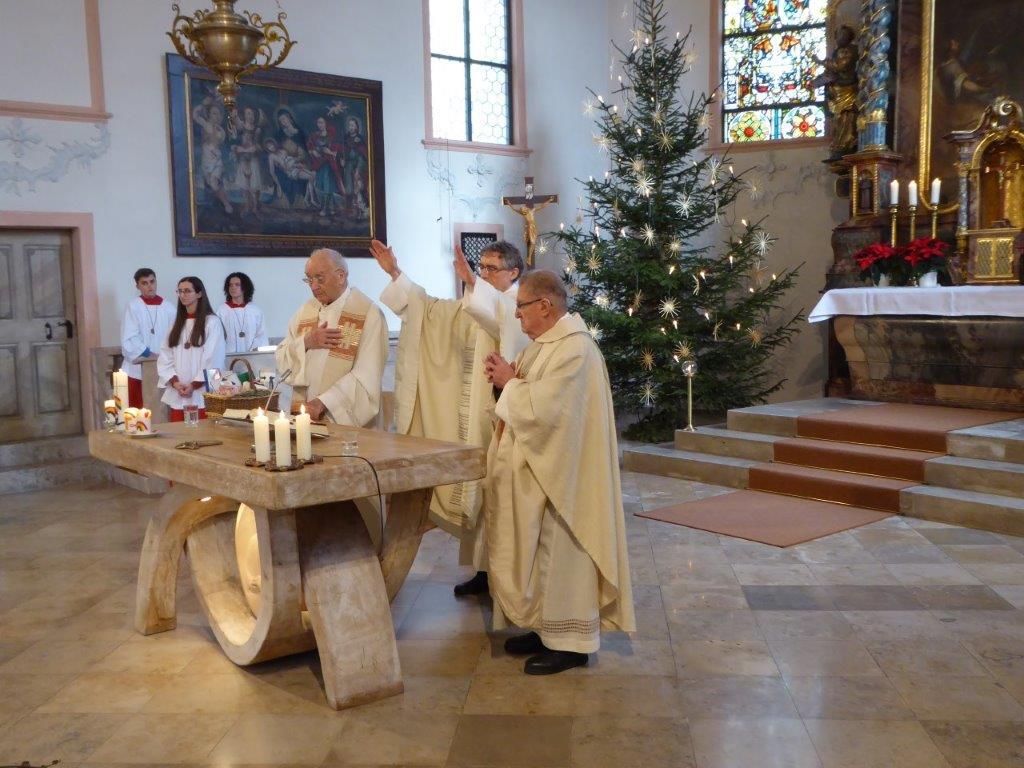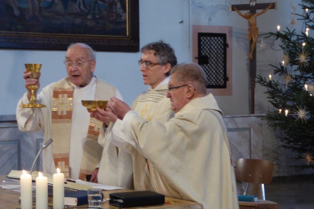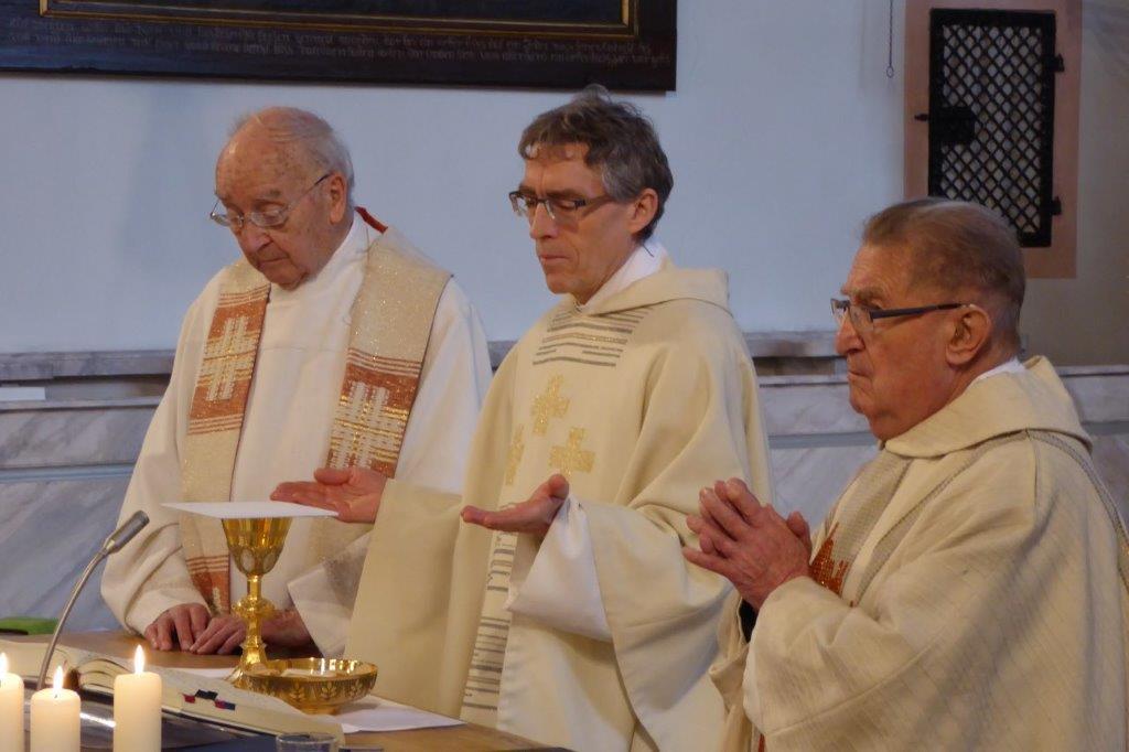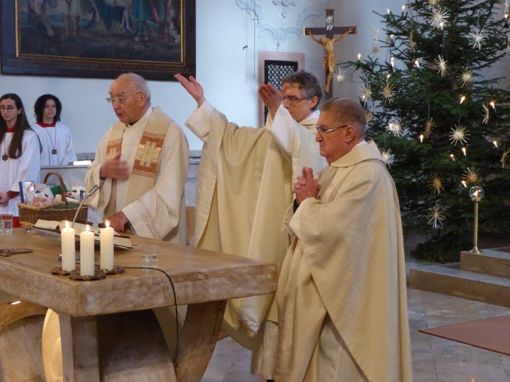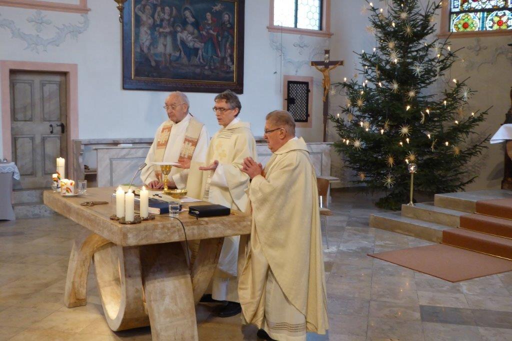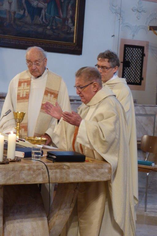 Zusammen mit Pfarrer Karlheinz Brandl und Pfarrer i.R. Julius Auer (92), einem langjährigen Freund und Amtsbruder von Julius Dreher aus Engelswies bei Messkirch, zelebrierte er bei erstaunlich guter