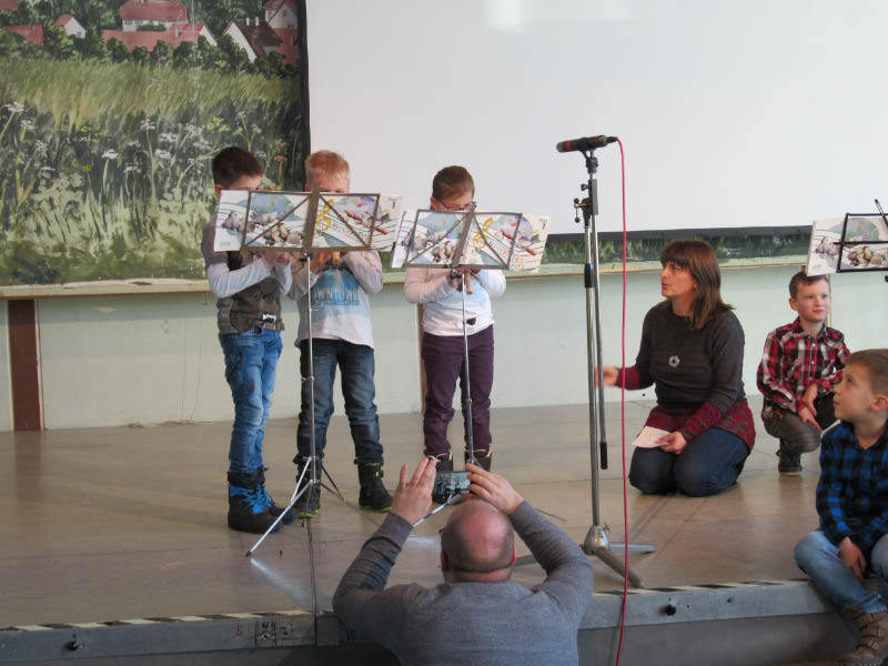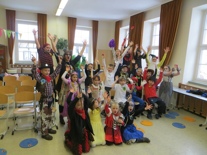 Eggäsli die Schule, wo sie die Kinder schon sehnsüchtig erwarteten. Mit dem Fützener Fasnetlied wurde die Narrenzunft von den Grundschülern und ihren Lehrerinnen – alle fastnachtlich verkleidet –
