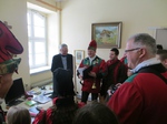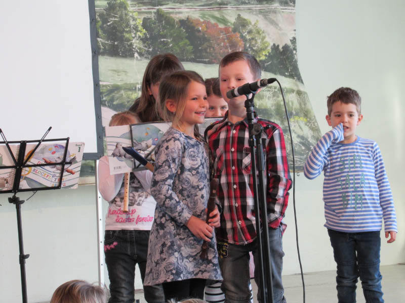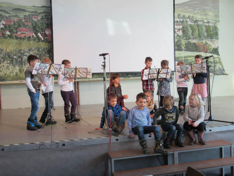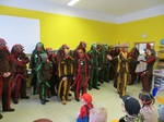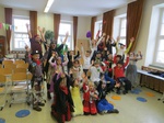 Nach dem kräfteraubenden Wettbewerb bedankten sich die Schüler bei den Narren mit einem fröhlichen Lied und wurden vom Narrenvater (Stefan Schmid) dafür mit einem großen Bonbonsegen belohnt. Danach