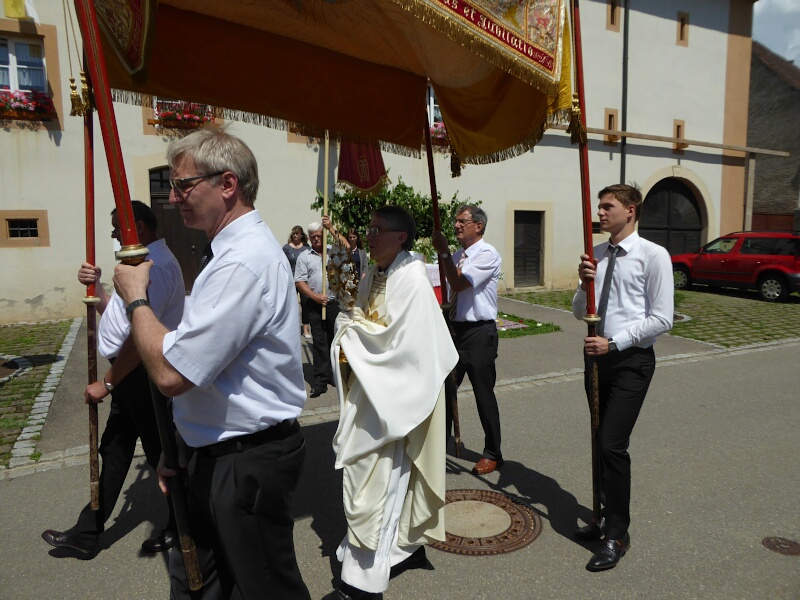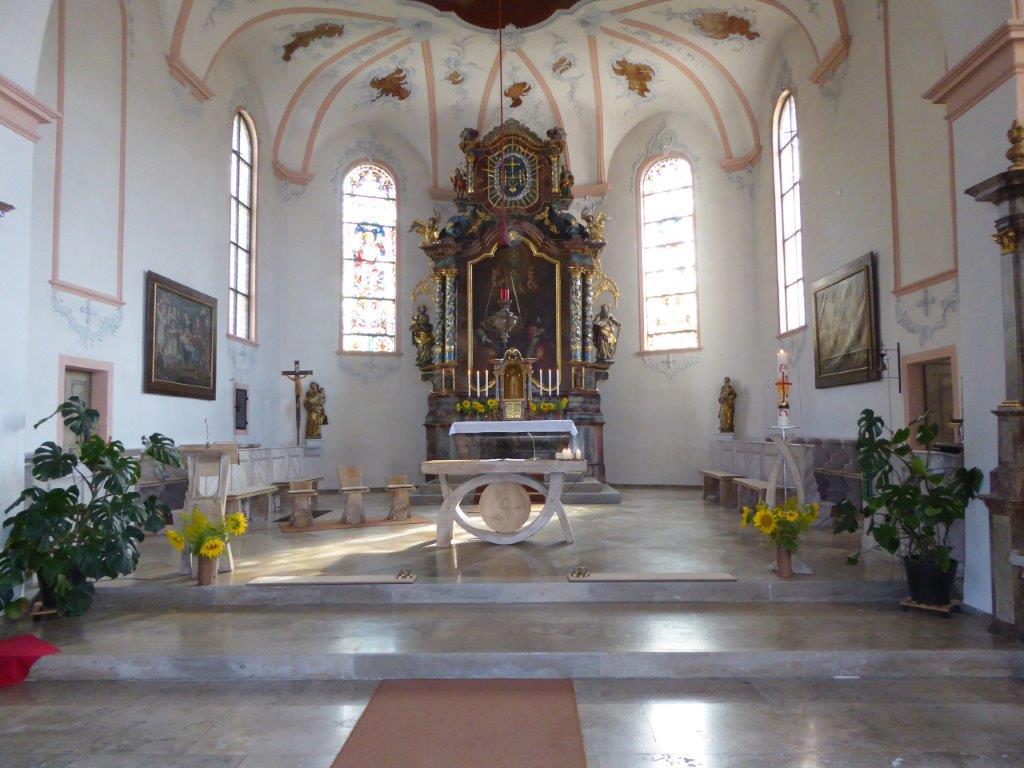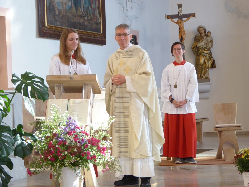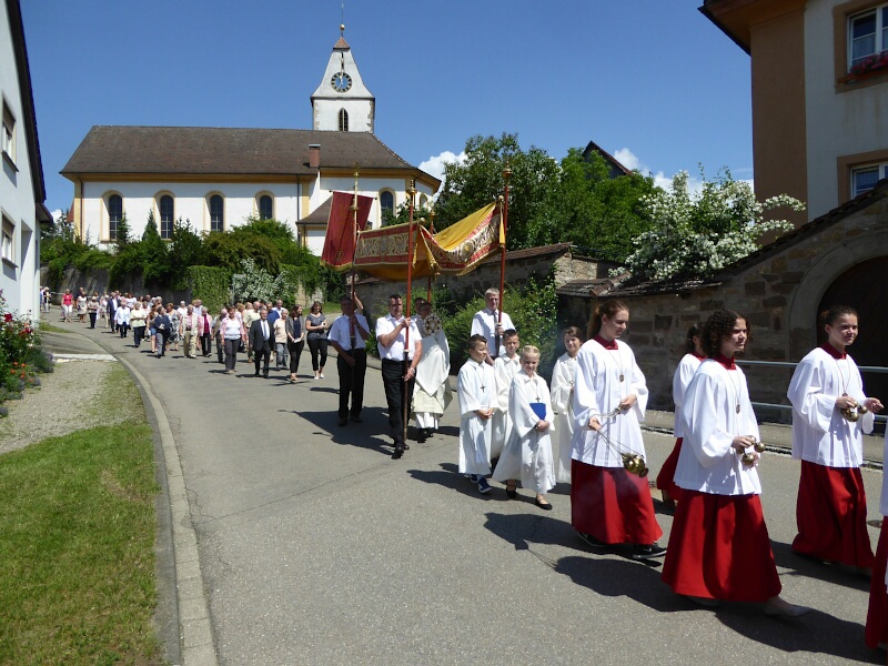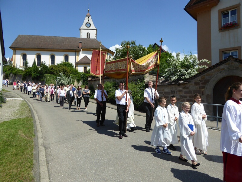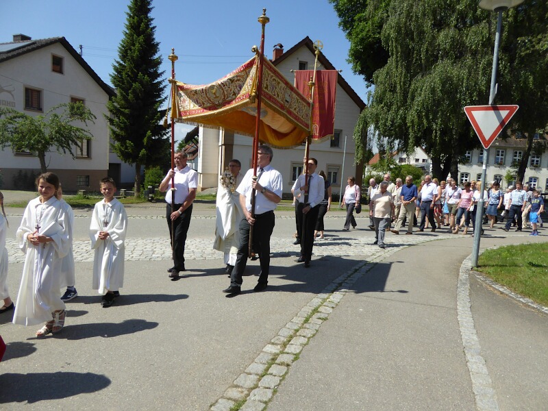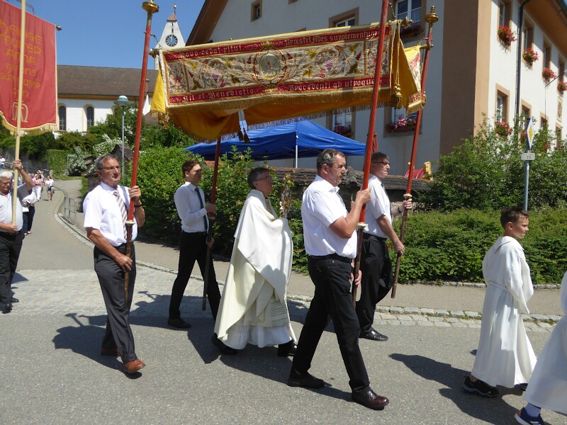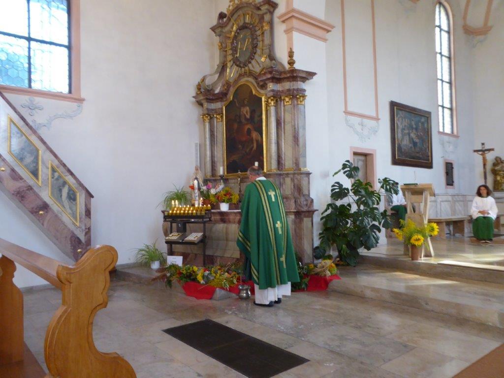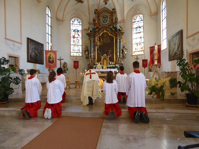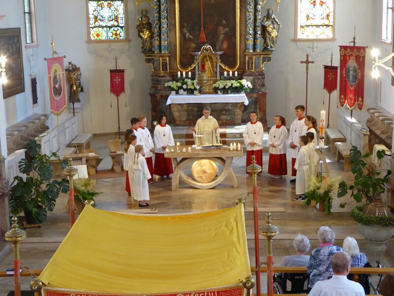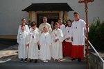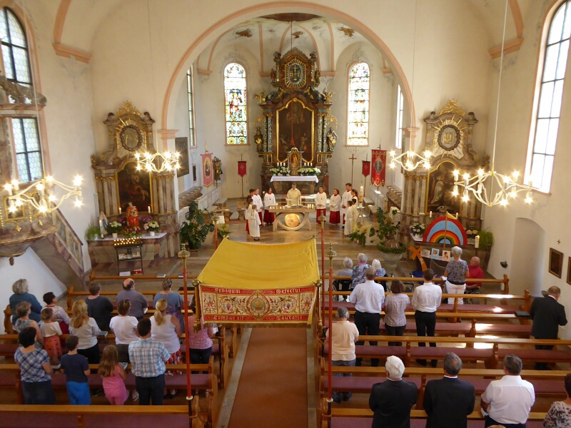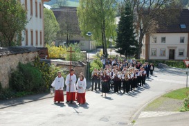 großen Festtag begehen. Zusammen mit Pfarrer Brandl, den Ministranten und dem Musikverein Eintracht, begab sich der Festzug vom Pfarrhaus zur Kirche.