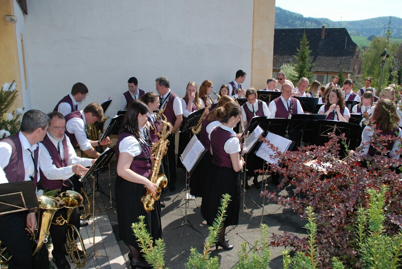 Nach dem Gottesdienst unterhielt der Musikverein unter Leitung von Caroline Gleichauf die Erstkommunikanten, Verwandte und Gäste mit unterhaltsamen Weisen.