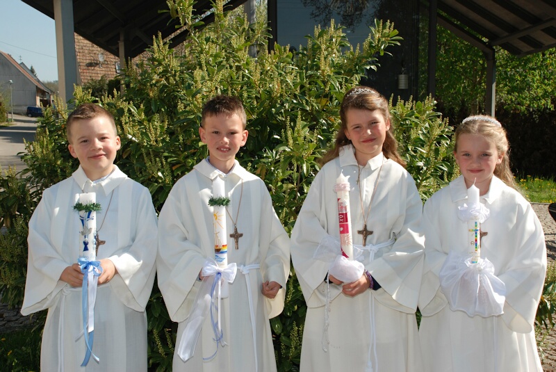 Dort empfingen Melina Palka, Leonie Nagel, Dominik Gut und Sandro Zolg im Beisein ihrer Familien und vieler Gottesdienstbesucher ihre erste hl. Kommunion.