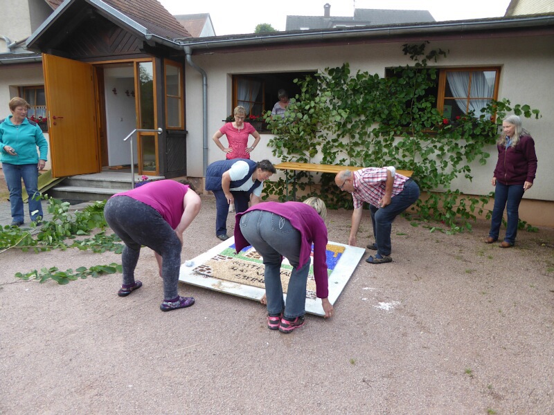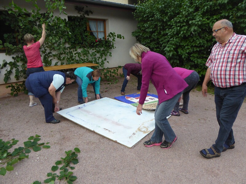 Da die gestellte Farblasur von Ortsvorsteher Georg Schloms bei weitem reichte, wurden auch gleich die neuen Geländer von der Bachbrücke in der Zubergasse neu überstrichen.