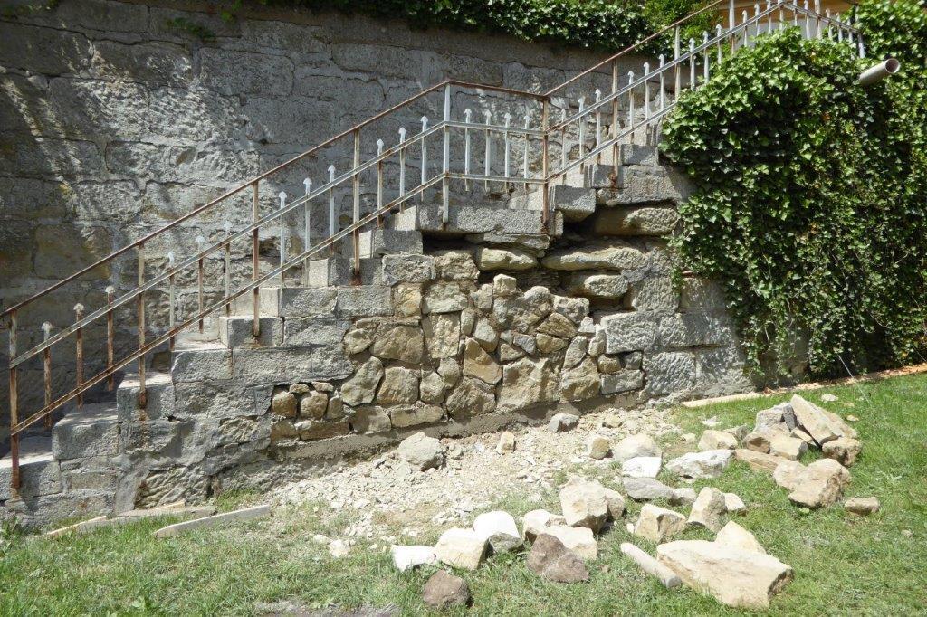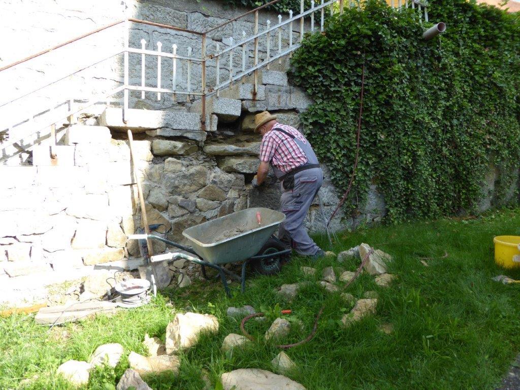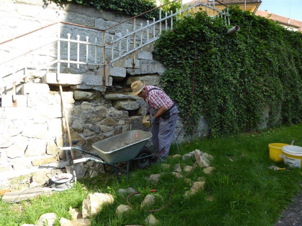 Von alleine sind diese Mauersteine beim „Außeren Brunnen“ in Fützen wohl nicht in die neue