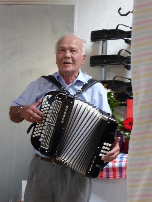 Ewald Wilhelm begleitete zunächst die Lieder mit dem Akkordeon. Der mit seiner Ehefrau Maria anwesende Johann Schey von den Schabelhöfen, wurde pflichtgemäß zu seinem am vergangenen Sonntag
