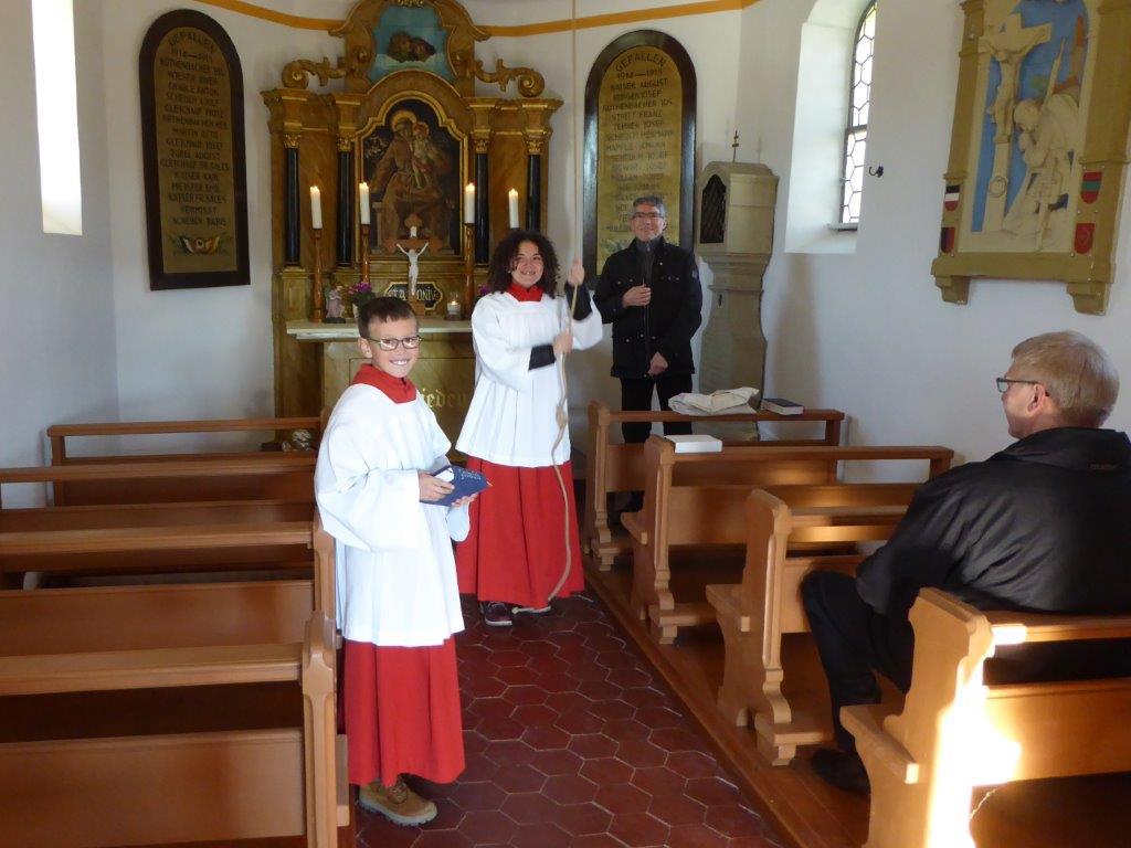 Fürbitten und die gemeinsam gesungenen Lieder gaben in der heimeligen Gedenkstätte der Andacht einen würdigen Rahmen. Die Ministranten wiederum freuten sich, auch mal, wie in alten Tagen bei