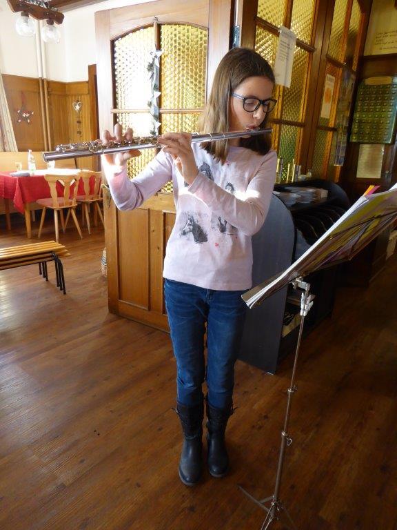 ihrer Querflöte begleitete. Mutter Birgit, die der unaufgeregten Künstlerin assistierte, freute sich mit ihrer Tochter über den verdienten Applaus.