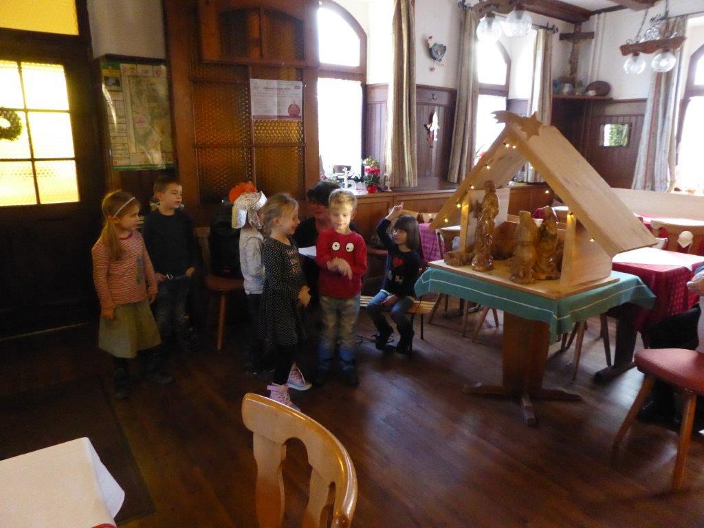 ebenfalls selbst gezimmerten Krippe durch die Kinder begleitend zu ihren Vorträgen aufstellen zu lassen.