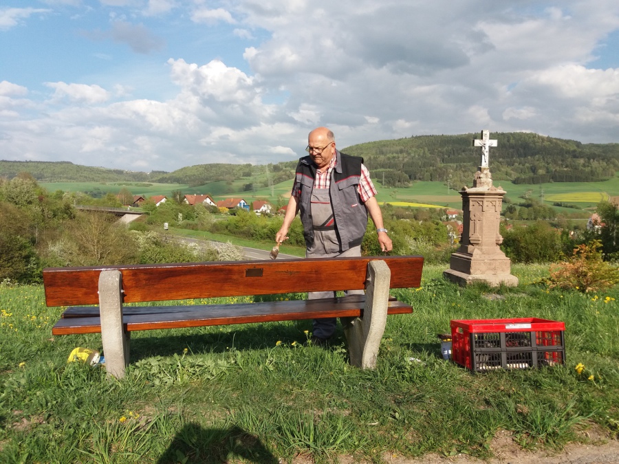 und malten die vor Jahren gespendeten Bänke von den Landfrauen auf dem Homberg und beim Bielweg neu an.