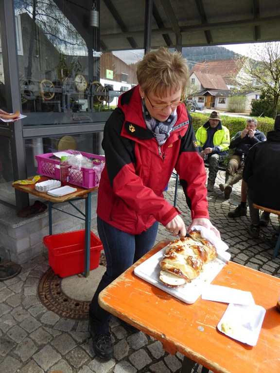 diebstahlsicher einbetoniert. Nach Ende der gut funktionierten Pflegeaktion lud der Schultes mit großen Dankesworten zu einem Vesper und Umtrunk ein.