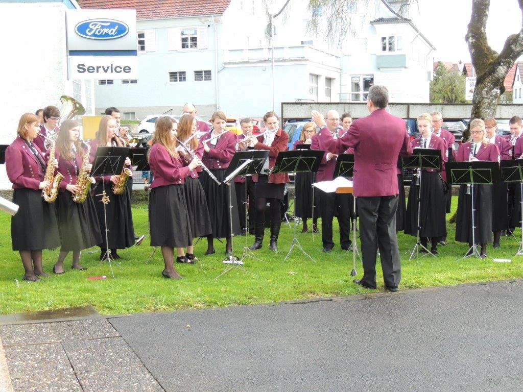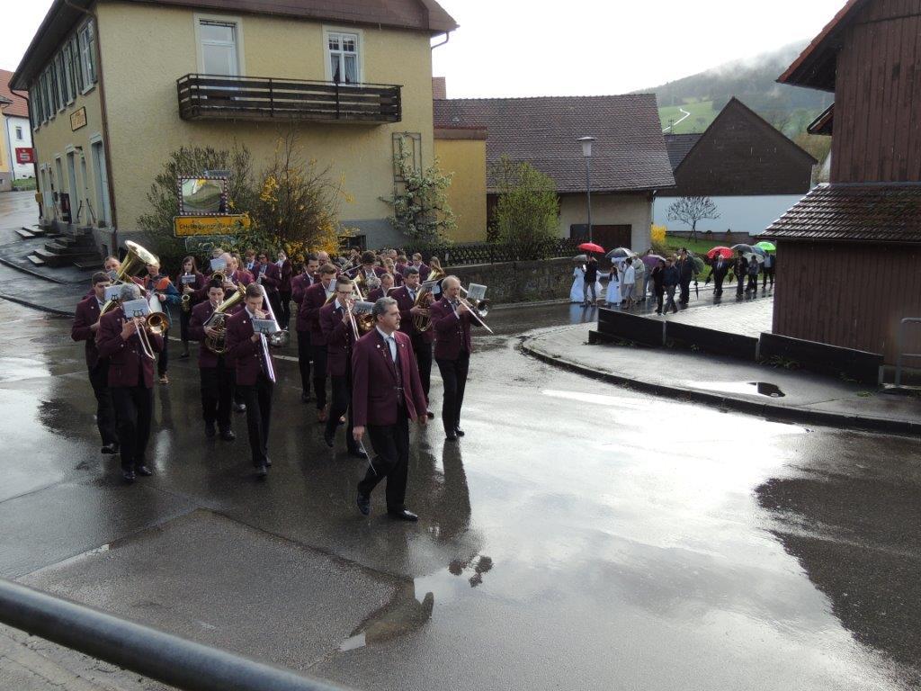 Das vom Musikverein eingeplante kleine Platzkonzert auf dem Kirchenvorplatz wurde mit Blick auf heraufziehende Regenwolken vor dem Gottesdienst dargeboten.