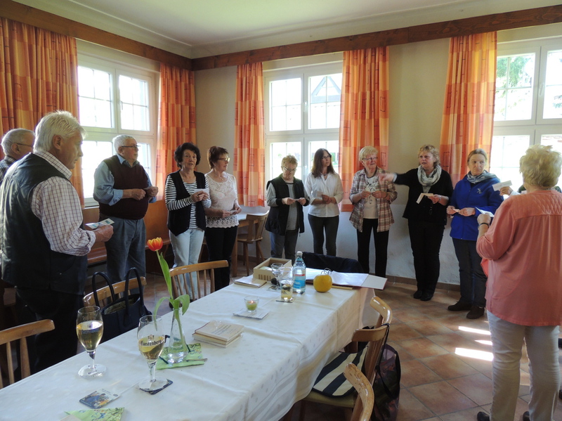 Dem Präsidenten des Altenwerkes, Ewald Wilhelm, überreichte Erich Schüle im Namen der Besucher nachträglich zu seinem 80. Geburtstag einen respektablen Einkaufsgutschein in einem Baumarkt, damit er auch weiterhin seinen Hobbys frönen kann. Seine Ehefrau Mechthild, die ihn bei der Organisation der Seniorentreffen, wie auch als Kassiererin und Schriftführerin unterstützt, wurde mit einem Blumenstrauß bedacht und den Beiden gedankt, dass sie nun schon seit neun Jahren die Verbindung zu den Freunden aus Riedöschingen pflegen und die schrumpfende Gemeinschaft am Leben halten. Schüle zitierte für die Beiden, wie auch für alle Anwesenden, noch das von einem unbekannten Dichter verfasste Gedicht über „Die fünf Gebote für Senioren“, wo es im ersten Gebot heißt: Ihr sollt nicht immer über Krankheiten reden.
