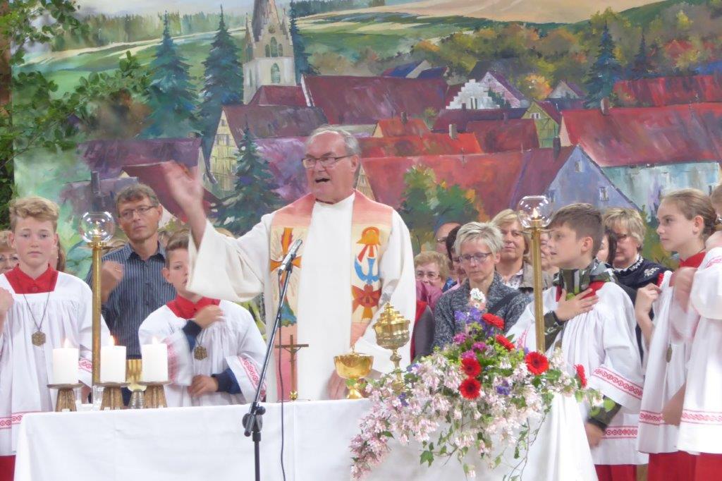 Begleitet vom Musikverein unter der Leitung von Peter Meister zelebrierte Pfarrer Karlheinz Brandl am Sonntag den feierlichen Gottesdienst zu Ehren des Dorfheiligen, sprach die Fürbitten vor dem