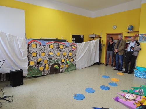 Während die Eltern in den Schulräumen von fleißigen Helferinnen (Müttern) mit Kaffee, Kuchen, oder Wurstbrötchen versorgt wurden, gingen die Erstklässler ins ansprechend dekorierte