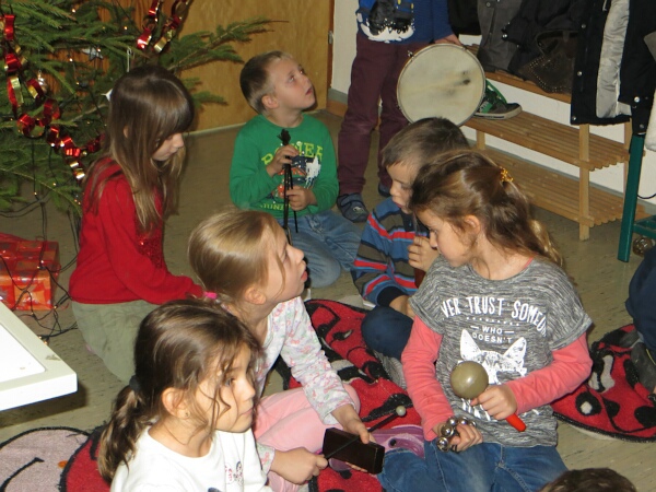 die größeren Schüler auch am Instrument überzeugten, zeigten die Kleinen, dass auch sie schon musikalisch zu überzeugen wissen. Ihre rhythmische Begleitung einer weihnachtlichen Geschichte hatten sie